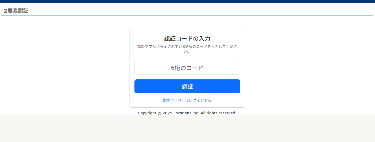 店舗ID、ログインIDとパスワードを入力したのち、「2要素認証」という画面に遷移します。